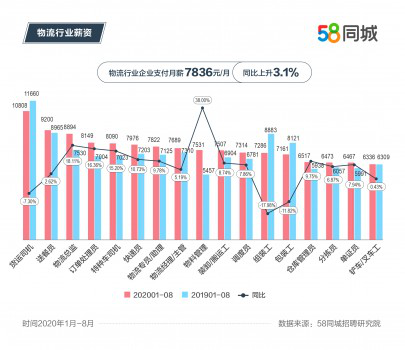 薪酬水平也是物流行業(yè)就業(yè)的重要指標(biāo),58同城招聘研究院數(shù)據(jù)顯示,今年1-8月,交通運(yùn)輸、倉(cāng)儲(chǔ)和郵政業(yè)支付月薪達(dá)到7836元,同比上升3.1%。典型職位中,貨運(yùn)司機(jī)支付月薪第一,達(dá)到10808元;送餐員支付月薪排名第二,為9200元;物料管理支付月薪同比上升最快,增幅38%,月薪達(dá)到7531元??梢?,物流行業(yè)崗位薪資與崗位技術(shù)含量、市場(chǎng)需求、勞動(dòng)強(qiáng)度密切相關(guān),技術(shù)含量高、市場(chǎng)需求大、勞動(dòng)強(qiáng)度大的崗位收入更高。